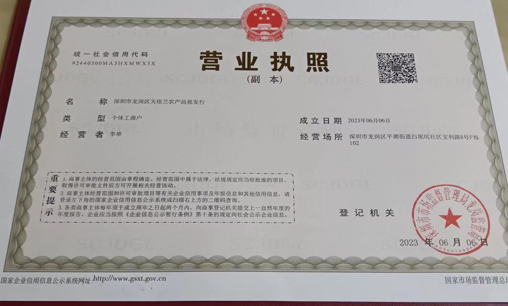 根据国家工商总局《网络交易管理办法》要求对网店营业执照信息公示如下: