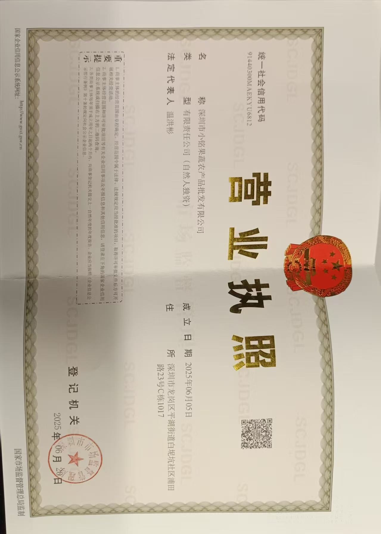 根据国家工商总局《网络交易管理办法》要求对网店营业执照信息公示如下: