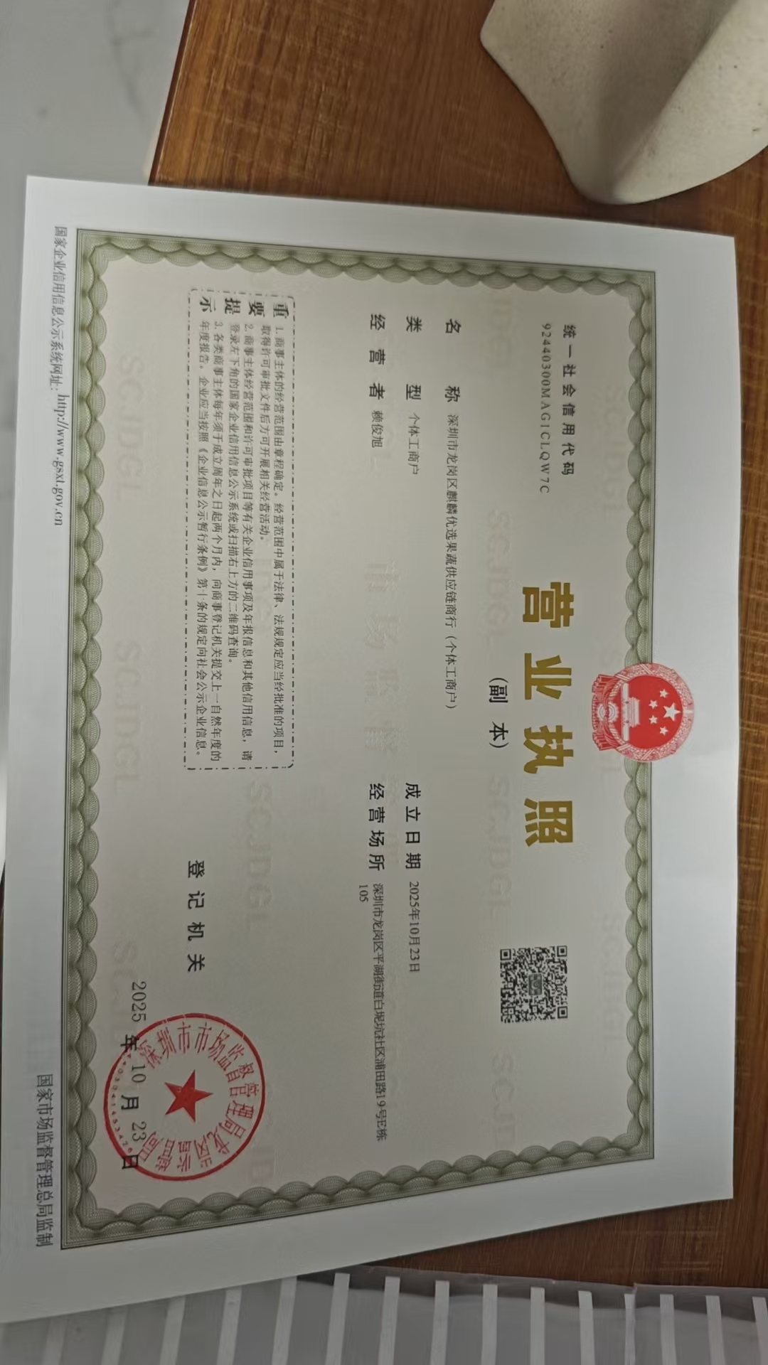 根据国家工商总局《网络交易管理办法》要求对网店营业执照信息公示如下: