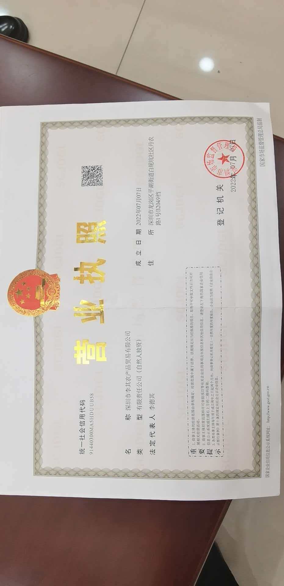 根据国家工商总局《网络交易管理办法》要求对网店营业执照信息公示如下: